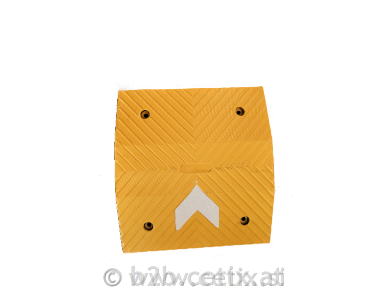 Die Straßen-Bodenschwellen Modell DH-SP aus schwarz-gelbem Gummi mit weißen reflektierenden Pfeilen sind ideal für private Grundstücke, Parkplätze und Wohngebiete.